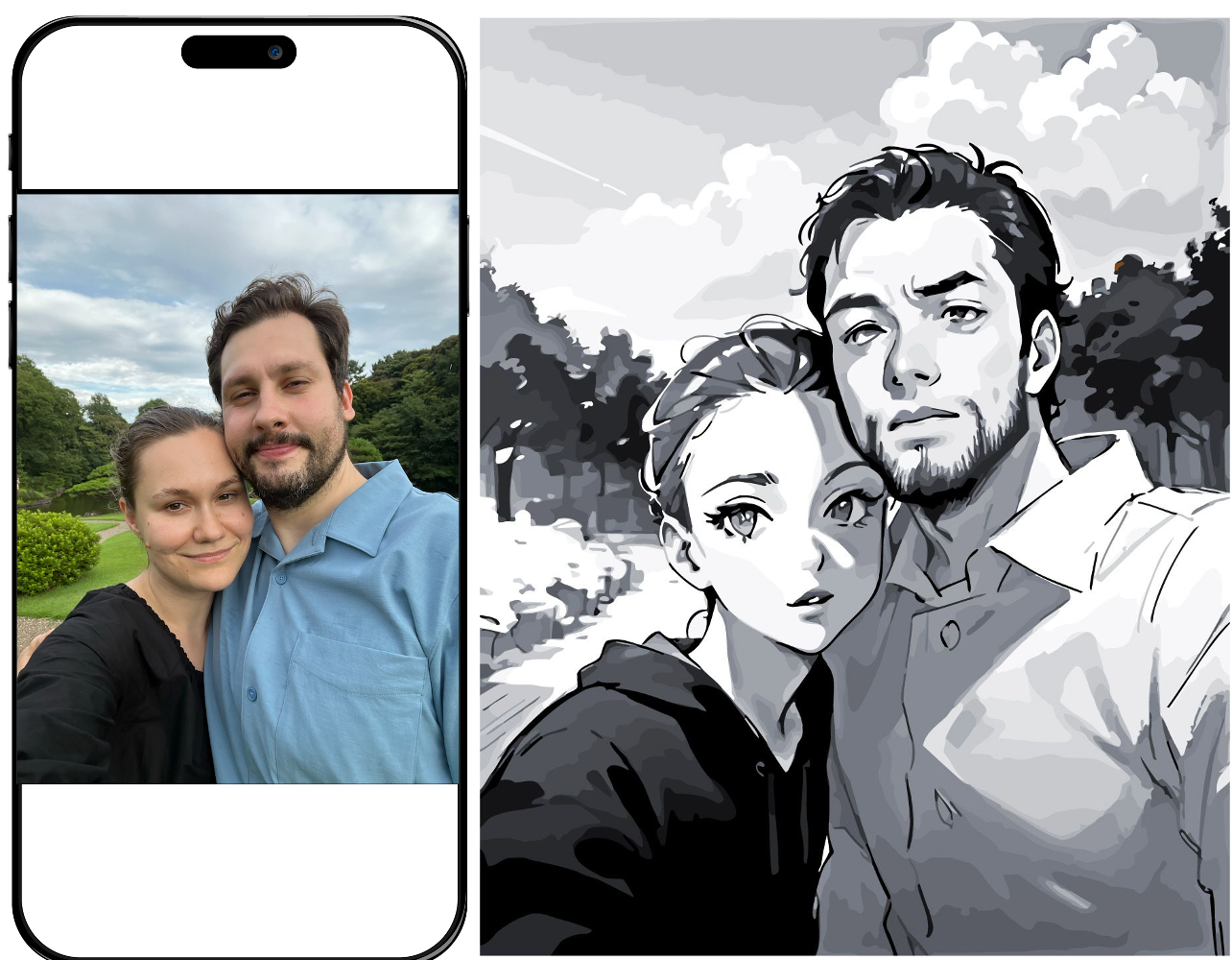 Create a custom by numbers for yourself and your loved ones in Anime Black and White style. Please choose a framed/unframed option, upload a picture of yourself and pay. We will send you a black and white anime picture for your approval via email. You will have 48 hours to reply after which the painting will be sent for production and printing.